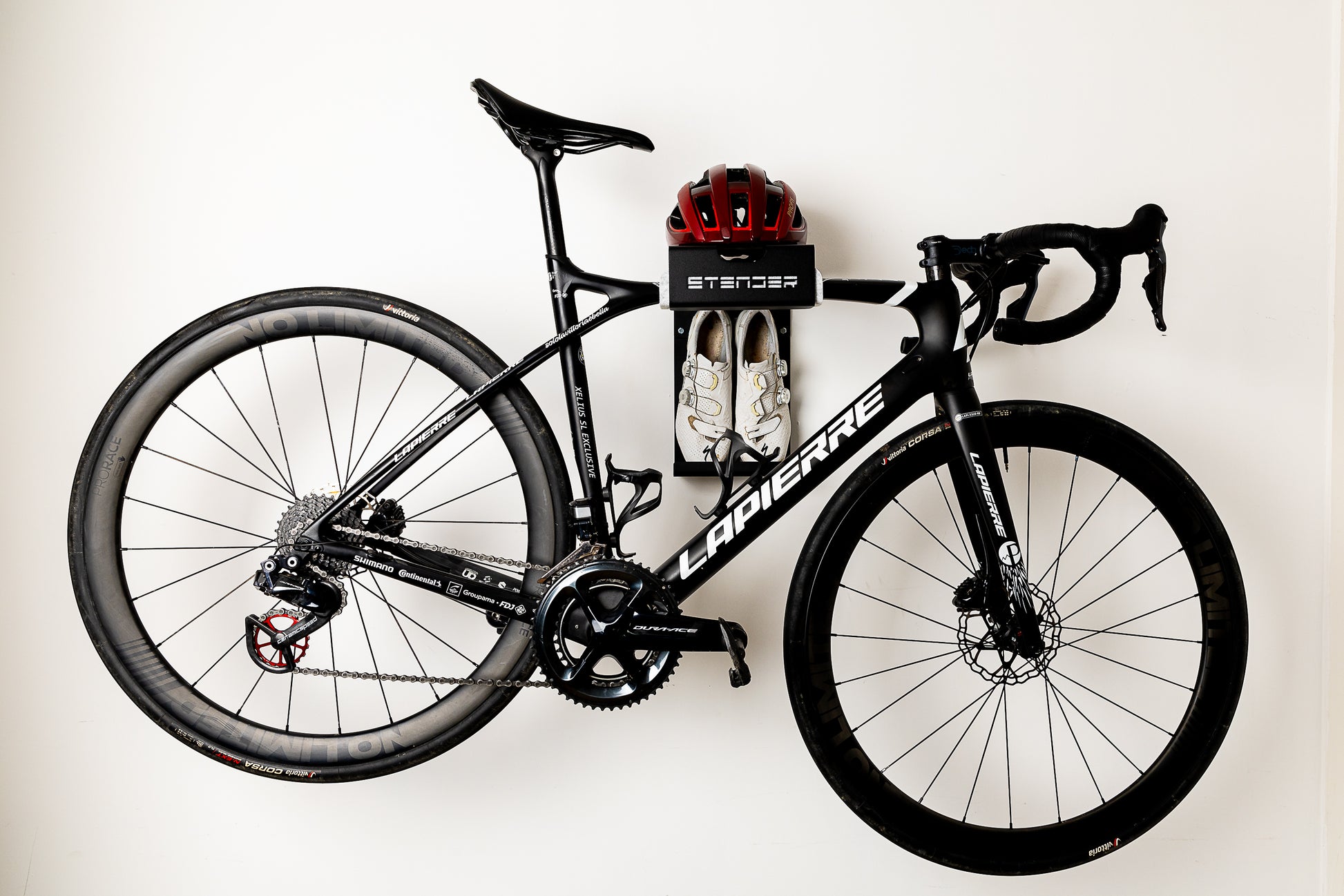 A STENDER ni samo praktična rešitev za shranjevanje kolesa. Je oblikovalski kos, ki kolo povzdigne v umetniški objekt in doda karakter vsaki sobi, pisarni ali domači garaži. Z vgrajenim prostorom za čelado, kolesarske čevlje ali dodatke postane središče tvoje kolesarske izkušnje – tudi ko ne voziš.